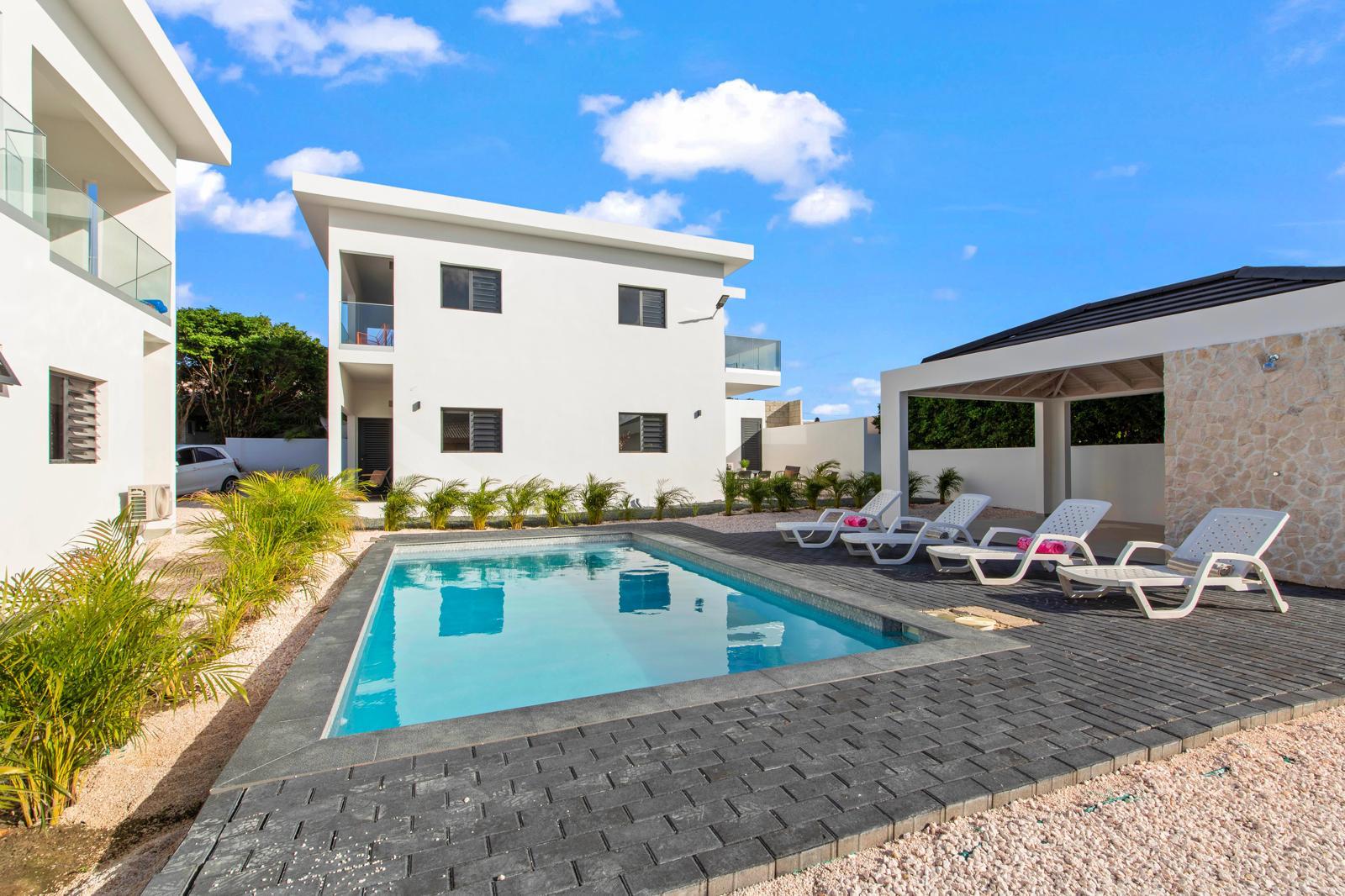 – Gemeenschappelijk zwembad met buitendouche, toilet en loungehoek